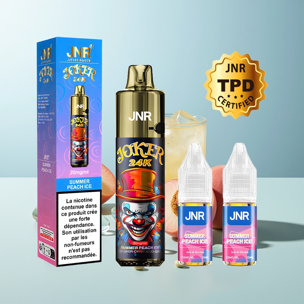 Каталог| Популярни марки| JNR| JNR Joker 24K| JNR Joker 24000 Пуфа Едноразов Вейп Лятна Праскова Лед се 800mAh Батерия Тип-C Зарядно TPD Съобразен 2% Никотин