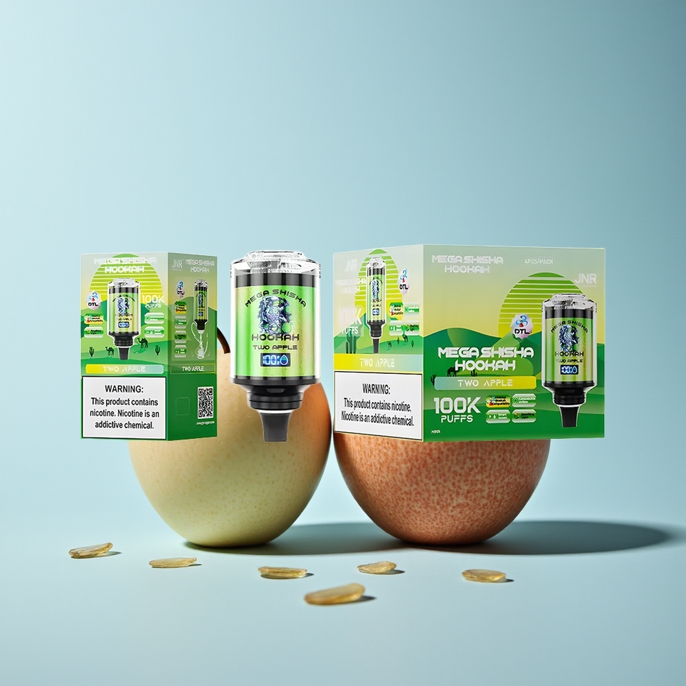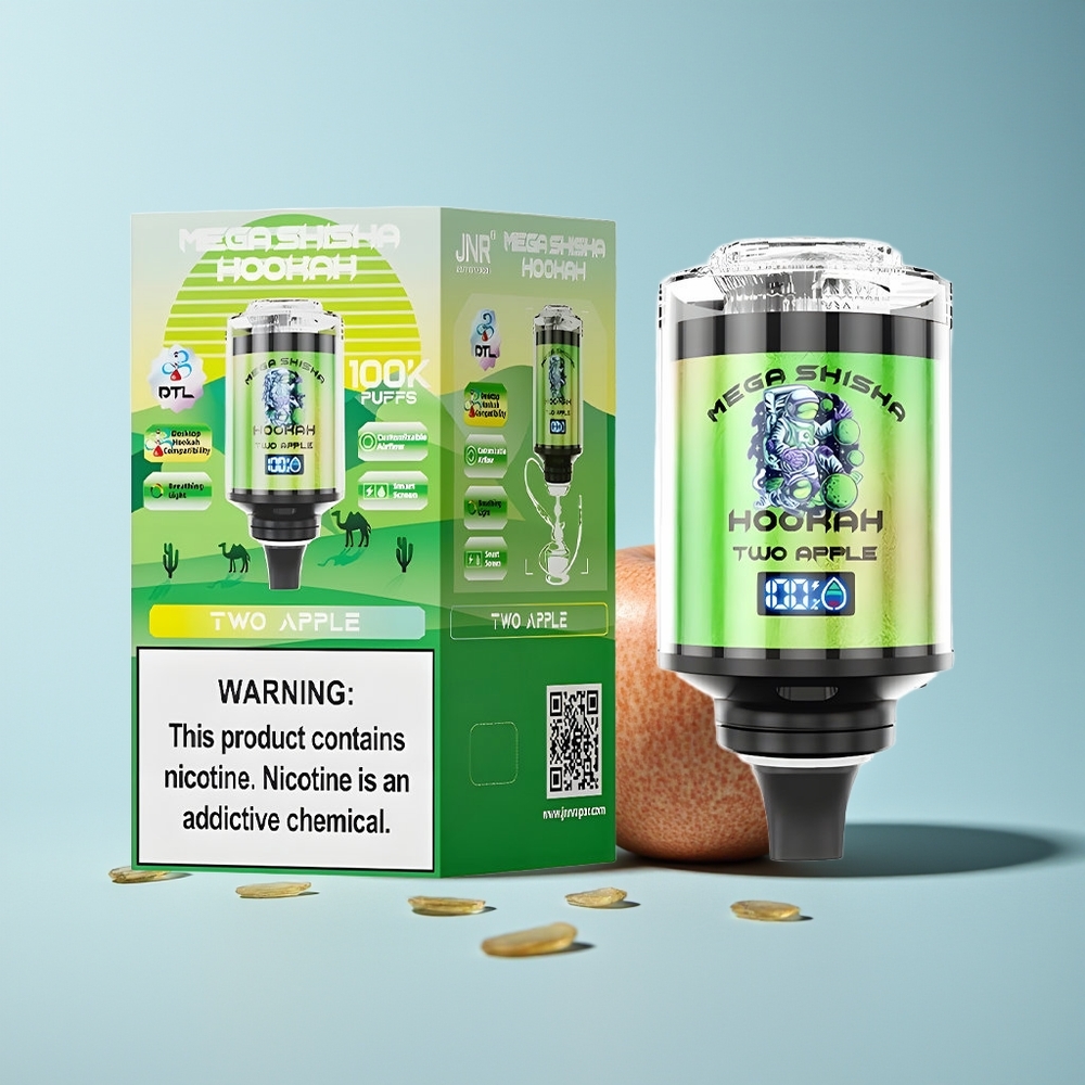 JNR Mega Shisha Hookah 100K 2 усти Ябълки Desktop Compatibility Светещ Дисплей Регулируем въздушен поток